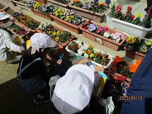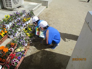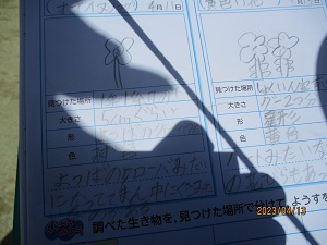 3年生が理科の勉強で、運動場に出て自然観察をしていました。 花を見つけて、形・色・大きさに着目してノートに記録している子や、虫を見つけてノートに記録している子など、それぞれが楽しそうに自然を見つけていました。