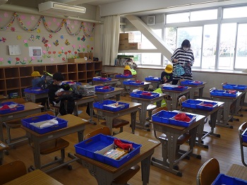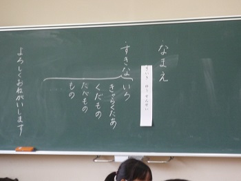 今日の勉強は、登校後にすること、トイレの使い方などをみんなで確認したり、自己紹介をしたりしていました。