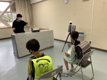 今週から「赤外線サーモグラフィカメラ」を使って検温チェックを強化しています。カメラの前に立つと自動で検温してくれるもので、現在、緊急事態宣言中のため、各公民館等で使用できないサーモグラフィを学校へ回していただきました。