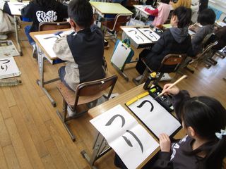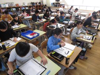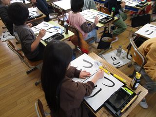 3年生が習字で「つり」の字を練習していました。