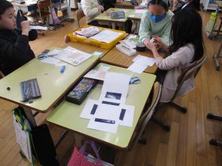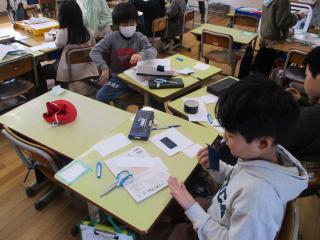 2年生は、算数「はこの形をしらべよう」で、実際に自分で箱を作っていました。