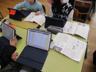 3年生は、国語で、タブレットを使って「わたしたちの学校じまん」の発表内容を考えていました。