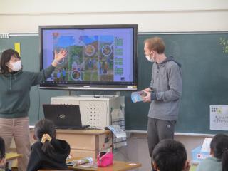 3年生は、外国語活動で、「What‘sthis?」を使って、身の回りの物の言い方や,ある物が何かを尋ねたり答えたりする表現に慣れ親しむ活動を行っていました。