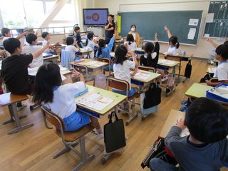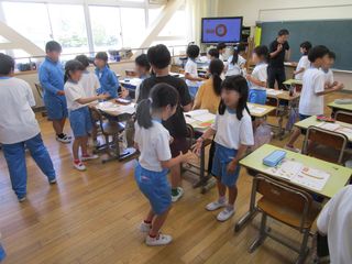 英語のジャンケン「Rock-Paper-Scissors」をしながら、みんなで楽しく活動していました。