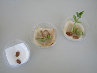 5年生の理科で、インゲンマメの種を使って発芽の条件について調べていました。
