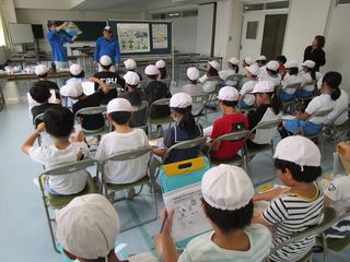 今日の午後、環境事業課の方に来ていただき、家庭から出るゴミの収集について教えていただきました。