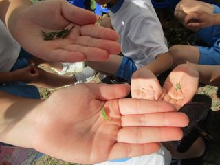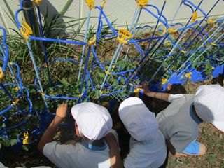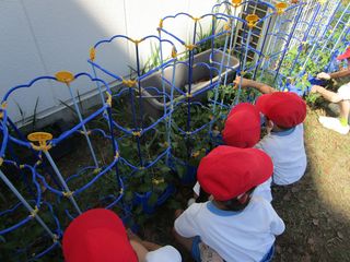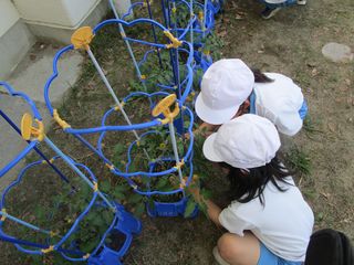 2年生が生活科で育てているミニトマトの手入れをしていました。