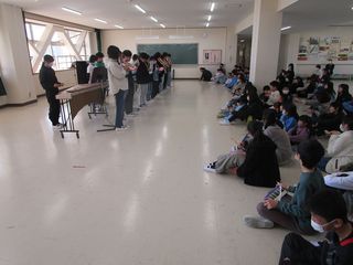 6年1組と2組が、今日の20分休みに、音楽で練習してきた「L・O・V・E」の合奏を披露してくれました。