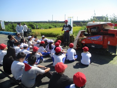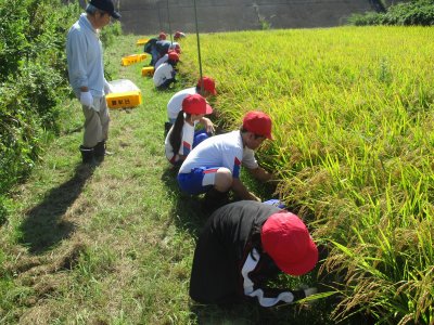 ◆稲刈り体験(5年生)JA、白塚運営協議会、神社関係の方々にお世話になり、稲刈り体験をしました。