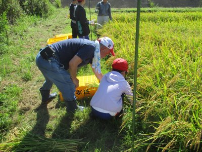 稲刈りは10分ほど体験をしましたが、かまの使い方も慣れ、うまく刈る子もいました。