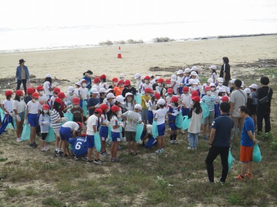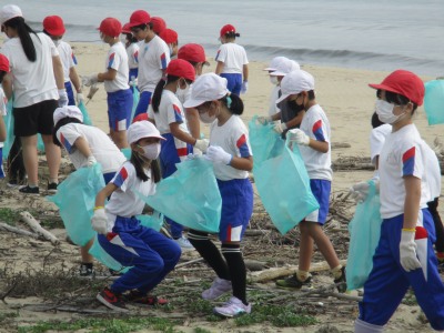 全校で毎年行っている浜清掃です。
