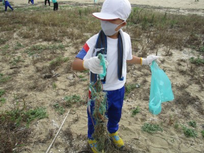 軍手とごみ袋を各自もって、海岸へ向かいました。