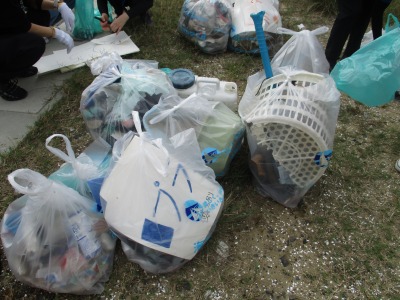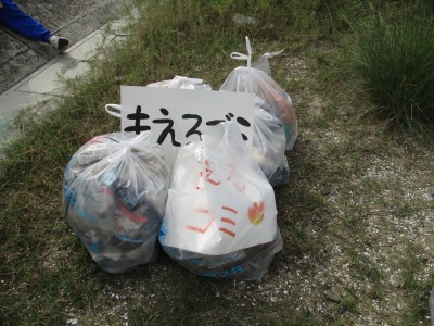 「重い~!」と言いながら、ごみを拾い、分別を行いました。