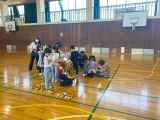 津市長寿会の17名の方に来ていただき、1年生が昔の遊びをいっしょに楽しみました。こま回し、けん玉、あやとり、お手玉の4つのグループに分かれ、名人に教えてもらうことができました。遊びによっては初めて体験した子もあり、とてもうれしそうな子どもたちの様子が見られました。津市長寿会の皆さんは、230名ほどの方が活動してみえるそうです。おじいさんおばあさんと触れ合ういい機会になりました。