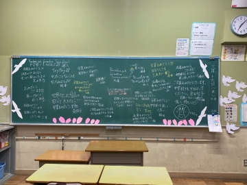 明日は、令和7年度卒業証書授与式が行われます。116名の子どもたちが巣立っていきます。今日は、5年生が椅子をきれいに並べたり掃除や飾りつけをしたりして素晴らしい会場を作ってくれました。よく頑張ってくれました。給食にはお祝い給食として、赤飯やぶりの照り焼き、手作りみかんゼリーが出ました。調理員さんありがとうございました。教員からは毎年、6年生の教室の黒板に卒業生に向けてメッセージを書いてエールを送っています。明日、卒業生を温かく見送りたいと思います。