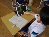 2年生がタブレットで写真を撮って、教室で観察ノートに書き写します。