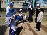 3年生が学校支援本部の方にお世話になり大豆の種をまきました。