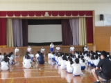 身長・体重を測定する前に、養護教諭による各学年に応じた保健指導がありました。
