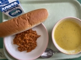 【スロッピージョーサンド かぼちゃのポタージュ 牛乳】