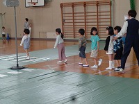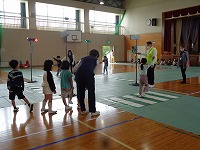 イラストを使って教えてもらいました。その後、体育館に信号機を