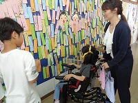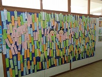 飾りたい場所に貼り付けました。どんな願い事がかいてあるのか、