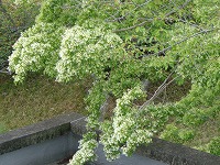 学校の給食室裏に大きな木が1本あります。今、白い花が満開に咲いています。
