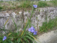 校庭のみぞのそばに、ムラセキツユクサが咲いていました。