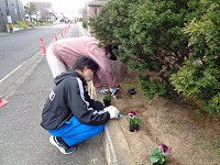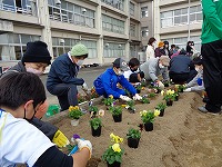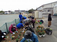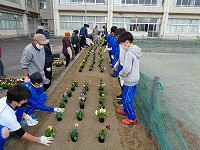 パンジーの苗を植えました。特色ある教育活動で、約260株