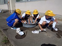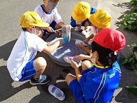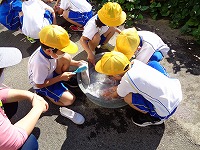 みんなそれぞれブラシで楽しくこすり、真っ白に
