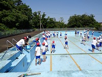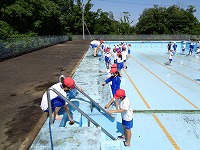 3年ぶりのプール水泳に向けて、5月24日に5年生がプールサイドなど、6月2日に6年生がプール内を掃除しました。泥や落ち葉がたくさんあったり、藻が生えていたりして、大変な作業でしたが、5,6年生ががんばってこすってくれて、とってもきれいになりました。暑くなってきたので、みんなプールが待ち遠しい様子です。5,6年生の皆さん、ありがとう!