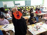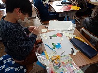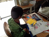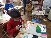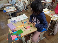 1年生は、カラーのタックシールを使って、作品を作っています。