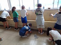 <大掃除の様子:一生懸命に手洗い場そうじや雑巾がけをしています>