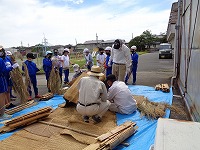 米を取った「わら」は、昔は縄になったたり、むしろにしたり、畑で