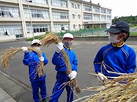 取った稲からコメをとる「脱穀」を体験させていただきました。
