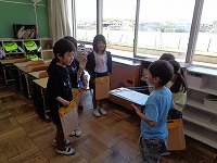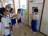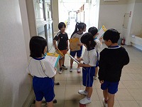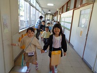 今日生活科で1年生と2年生がグループになって学校探検をしました。