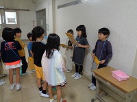 校舎内のあちこち回って教室の説明を2年生がし、1年生はお話を聞い