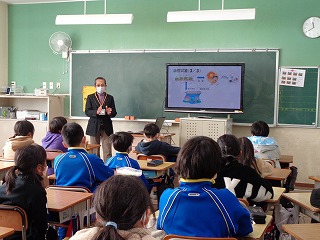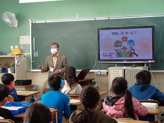 防災教育のボランティアの方に、4年生を対象に防災教育を