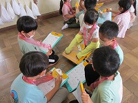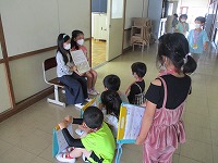2年生が1年生に校舎内を案内する学校探検が26日にありました。これまでに2年生はたくさん準備や練習をしてきました。待ちに待った学校探検、2年生はお兄さん・お姉さんとして張り切って案内し、1年生はいろいろな部屋に興味津々。学校のことがたくさんわかって、1年生はとっても喜んでいました。お互いの名前も覚え、これからも仲良く交流していけると思いました。