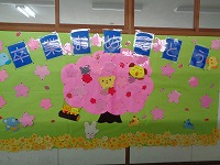 3月になりました。図書室前の掲示板は春らしい色と模様に変わりました。