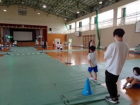 歩行訓練では、PTA役員の方にお手伝いしていただいたおかげで、一人一人に丁寧に確認しながら指導することができました。