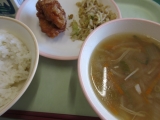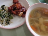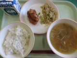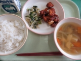 【油淋鶏 中華和え ワンタンスープ 麦飯 牛乳】