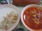 【ポークビーンズ ごぼうサラダ 黒糖パン 牛乳】