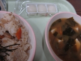 【芋煮 豆腐の味噌かけ 香味づけ 麦飯 牛乳】
