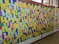 図書室の前の掲示板に、全校児童の七夕短冊が飾られました。