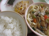【信田うどん 大根サラダ 減量麦飯 焼きのり 牛乳】