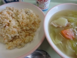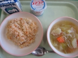 【ジャンバラヤ 白いんげん豆のスープ 牛乳 ヨーグルト】