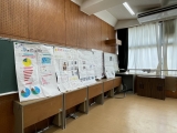 子どもたちが夏休みに取り組んだ自由研究や工作等の作品が低・中・高別に展示されています。