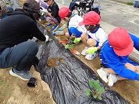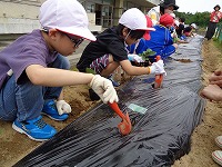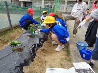 なすなどです。一人一つの苗を、穴をあけて、植えて、水をあげま