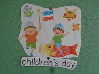 ALTのデビット先生が5月にかかわる英単語の掲示をしてくださいました。