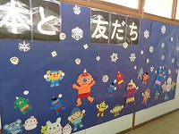 2月、節分が近づいてきました。図書室前の掲示版もボランティアさんに